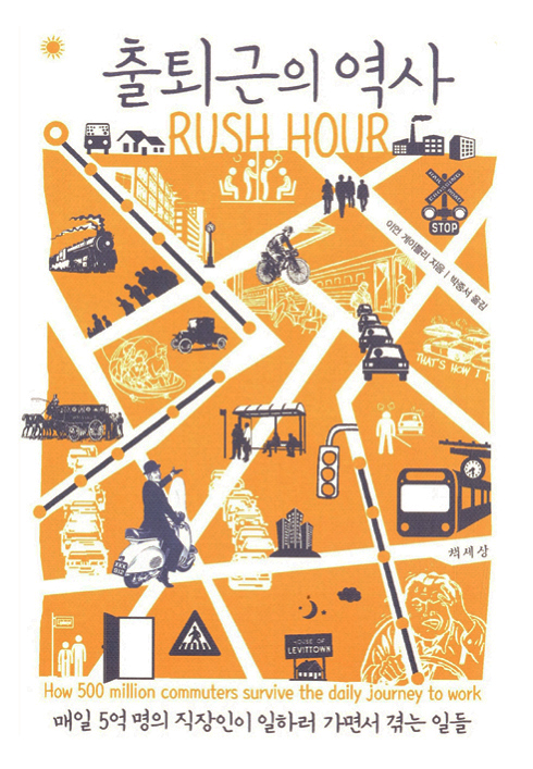 『출퇴근의 역사』는 수많은 사람들이 겪고 있고, 겪어야 하는 출퇴근 시간에 얽힌 역사를 보여주는 책입니다. 책 내용은 크게 세 꼭지로 구성됩니다. 우선 철도 문화의 발전과 함께 시작된 통근의 역사를 보여준 후, 현재 우리가 통근을 하며 겪는 일들에 대해 다룹니다. 그리고 마지막으로는 통근의 미래에 대한 이야기가 나옵니다.