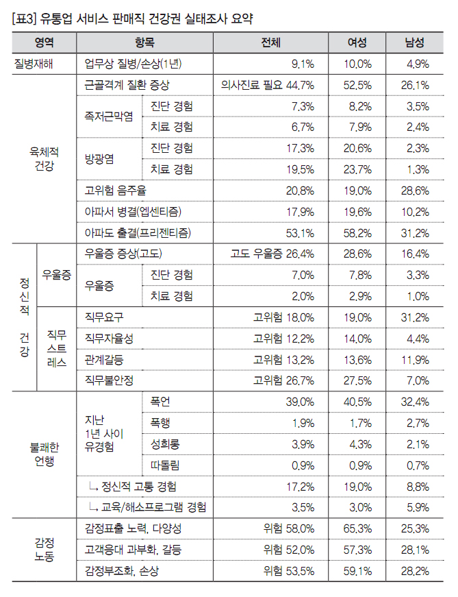 [연구노트] 유통업 서비스 판매직 노동 및 건강실태와 개선방향