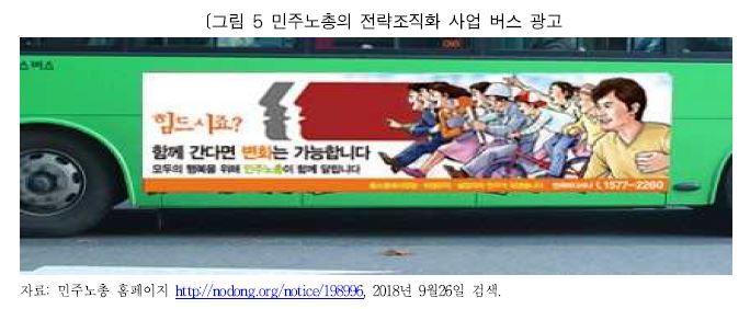 셋째, 원거리에 있는 노동자들에게 민주노총의 전략조직화와 관련된 입장을 전달하기 위해서 다양한 매체를 활용한 홍보계획을 제시하고 있다. 민주노총의 2018년 사업계획은 △조직화 대상 지역에 현수막 걸기 등 전통적인 방식 △라디오 및 지하철 광고 등 광역단위 전달 방식 △소셜미디어 등 새롭게 활성화되고 있는 개인 간 미시적인 연결망을 활용한 방식 등 다양한 측면에서 전략조직화 사업의 홍보 및 공론화를 추진할 것을 밝히고 있다. 이렇듯 다양한 관계망의 복합적인 활용을 통해, 전통적인 노조 서비스 전달체계로부터 소외된 ‘원거리’의 노동자들과 민주노총의 의사소통을 위한 접점을 넓히는 사업들을 추진하고 있다.
