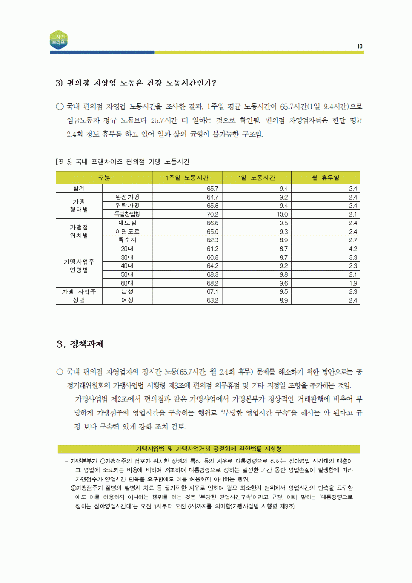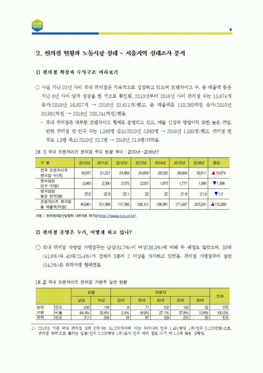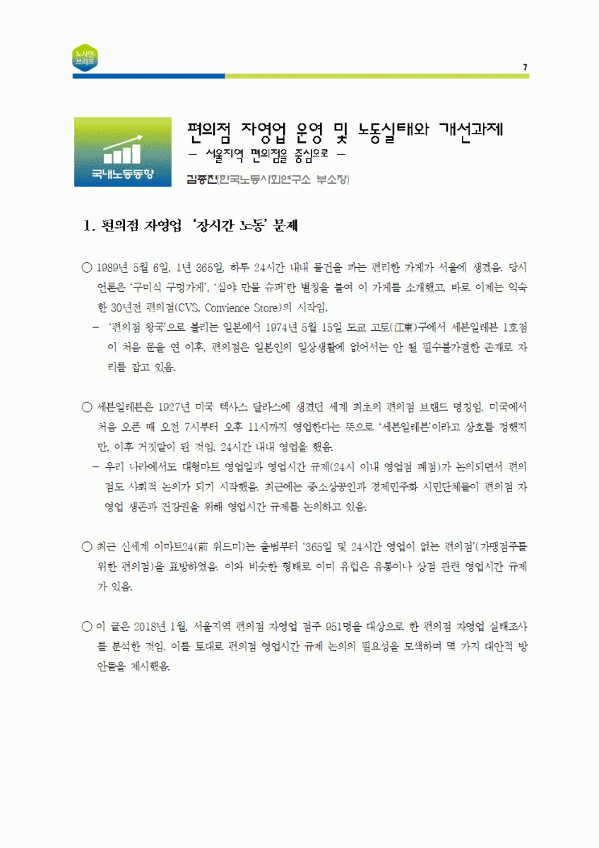 [노사연브리프 제5호_2018-05_국내노동동향] 편의점 자영업 운영 및 노동실태와 개선과제